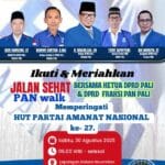 Hut 27 Tahun PAN, Umroh Sebagai Hadiah Utama Giat Jalan Santai dan Senam Berita, Daerah|Jumat, 29 Agustus 2025oleh redaksiPALI -Memeriahkan HUT ke 27 Partai Amanat Nasional (PAN) tahun ini, Dewan