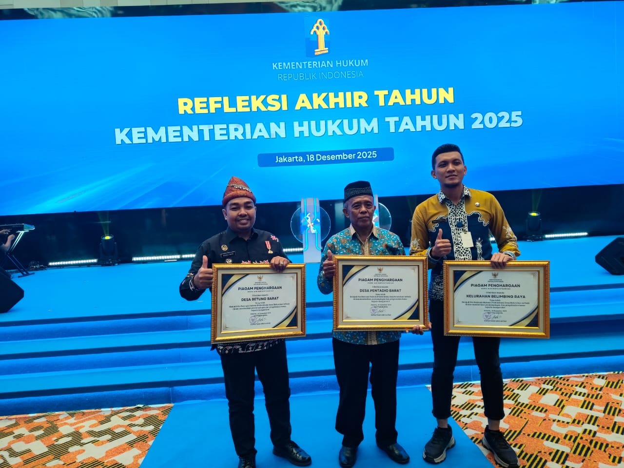 Pemerintah Desa Betung Barat menjadi satu-satunya desa dari Sumatera Selatan yang menerima undangan sekaligus apresiasi langsung dari Kementerian Hukum Republik Indonesia dalam kegiatan Refleksi Akhir Tahun Kementerian Hukum Tahun 2025 di Jakarta, Kamis (18/12/25).