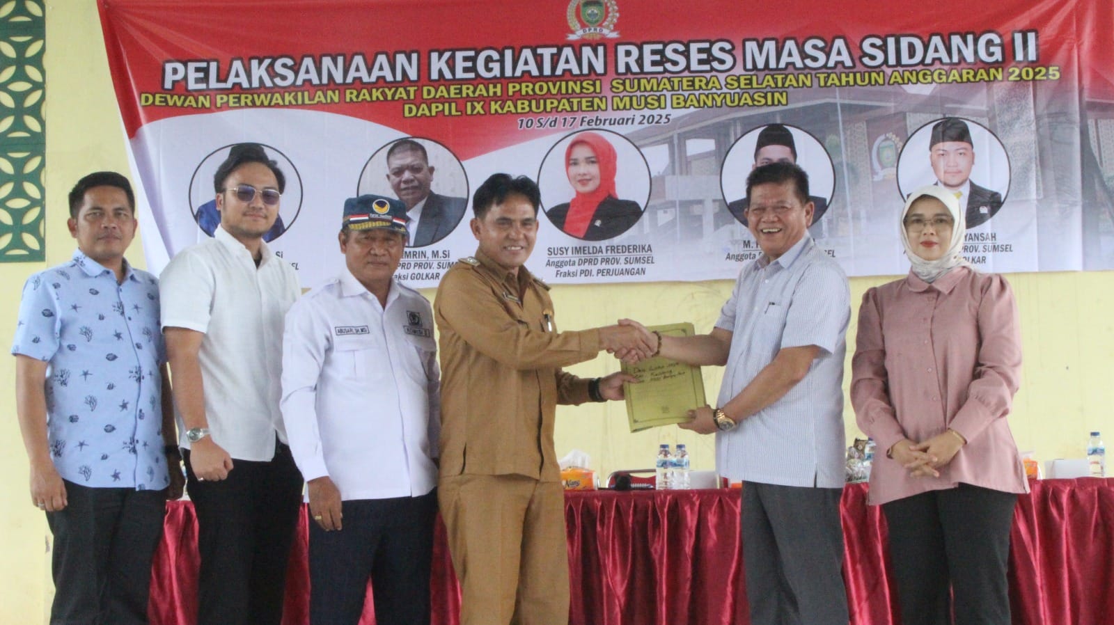 Terlihat lengkap Anggota DPRD Provinsi Sumatera Selatan dapil IX kabupaten Musi Banyuasin Abusari SH M.Si Fraksi Nasdem Drs Thamrin Msi Fraksi Golkar , M.Hasan Haikal Fraksi PKN, Andi Rizkiyansyah Fraksi Golkar, Susy Imelda Frederika Fraksi PDI.P.