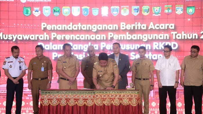 Palembang – Dalam rangka perumusan Rancangan RKPD Provinsi Sumatera Selatan Tahun 2026, digelar Musyawarah Perencanaan Pembangunan (Musrenbang) Rencana Kerja Pemerintah Daerah (RKPD) Provinsi Sumatera Selatan Tahun 2026. Bertempat di Ballroom Hotel Novotel Palembang, Senin 28 April 2025.