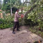 PALI – Adanya laporan warga, Pohon tumbang menghalangi badan jalan, menghambat para