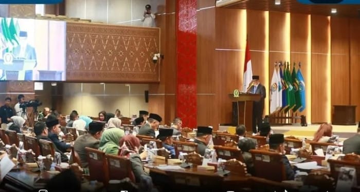 Wakil Gubernur (Wagub) Sumatera Selatan (Sumsel), H. Cik Ujang, menyampaikan tanggapan resmi atas pandangan umum fraksi-fraksi DPRD Provinsi Sumsel dalam Rapat Paripurna XV yang digelar di Ruang Rapat Paripurna DPRD Sumsel, Senin (16/6/2025).